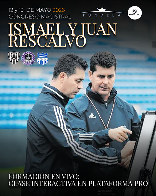 Los hermanos Rescalvo tienen una reconocida trayectoria en el fútbol sudamericano, dirigiendo equipos como Envigado, Deportivo Independiente de Medellín, Independiente del Valle, Emelec, The Strongest, Deportes Tolima, Mazatlán Fútbol Club y Barcelona SC, participando en competiciones internacionales como la Copa Libertadores y la Copa Sudamericana. Participarán en una clase exclusiva e interactiva vía Zoom, destinada únicamente a las personas registradas en la Plataforma PRO, donde compartirán su experiencia, metodología de trabajo y responderán en directo a los participantes.
